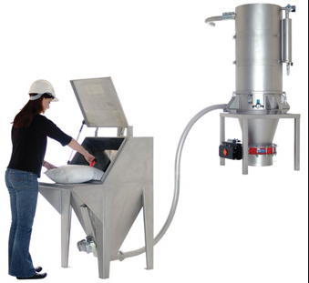 产品介绍利用真空上料机 真空输送机实现全自动化为混合机加料,减少车间内粉尘污染,减轻劳动强度。 设备说明: 混合机加料专用真空上料机它可以实现自动化加料,法兰连接避免混合机混合过程中粉尘外泄。特有的氮气补充装置,可实现在防爆要求高得化工厂使用。该真空上料机现在已在食品,化工,制药,新材料等多种行业中得到广泛应用。 设备工作原理: a)真空泵通过真空输送设备的分离容器产生真空。将物料从进料口通过吸料软管与吸料口吸入。 b)在分离容器的过滤仓内分离空气与物料,将物料收集在料仓中。旋风分离器阻止细小粉末进入过滤器,以提高过滤器的效率。 c)料仓充满物料时,真空泵自动关闭,输送设备内的压力达到平衡。放料阀开启,物料通过出料口流出,并直接落入储料容器。 设备优点: 整个输送过程完全在密闭的状态下完成,杜绝粉尘对工作环境、周边环境和操作人员所带来的污染和伤害。全自动化控制,杜绝人员操作产生的误差。适用性强可配合多种设备使用给予加料。无运动部件,维护费用低,快卡式连接,清理清洁方便。